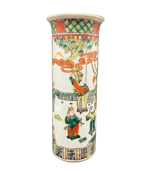 Chinese Qing Vase Famille Vert Porcelain Brush Pot