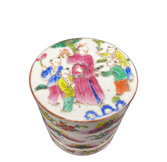 Chinese Porcelain Stacking Box Famille Rose. Qing Period, 19th Century.