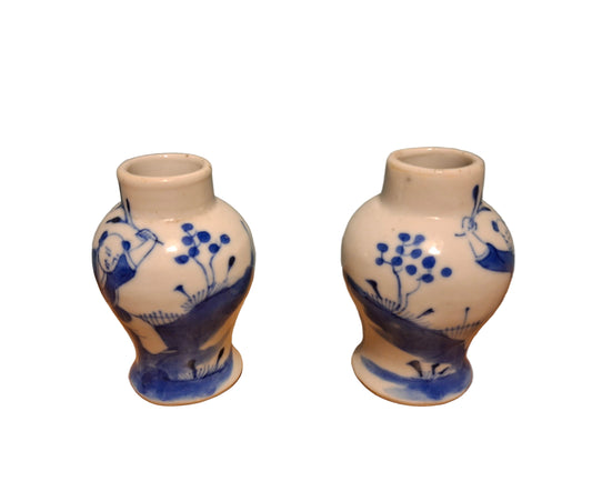 Chinese Miniature Vase Pair 19th Century Blue White Porcelain
