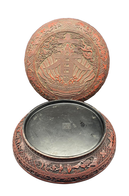 LARGE CINNABAR LACQUER 'DRAGON' BOX AND COVER QING DYNASTY