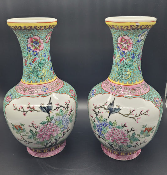 A Pair Of Chinese Early 20th Century Hand Enamelled Vase