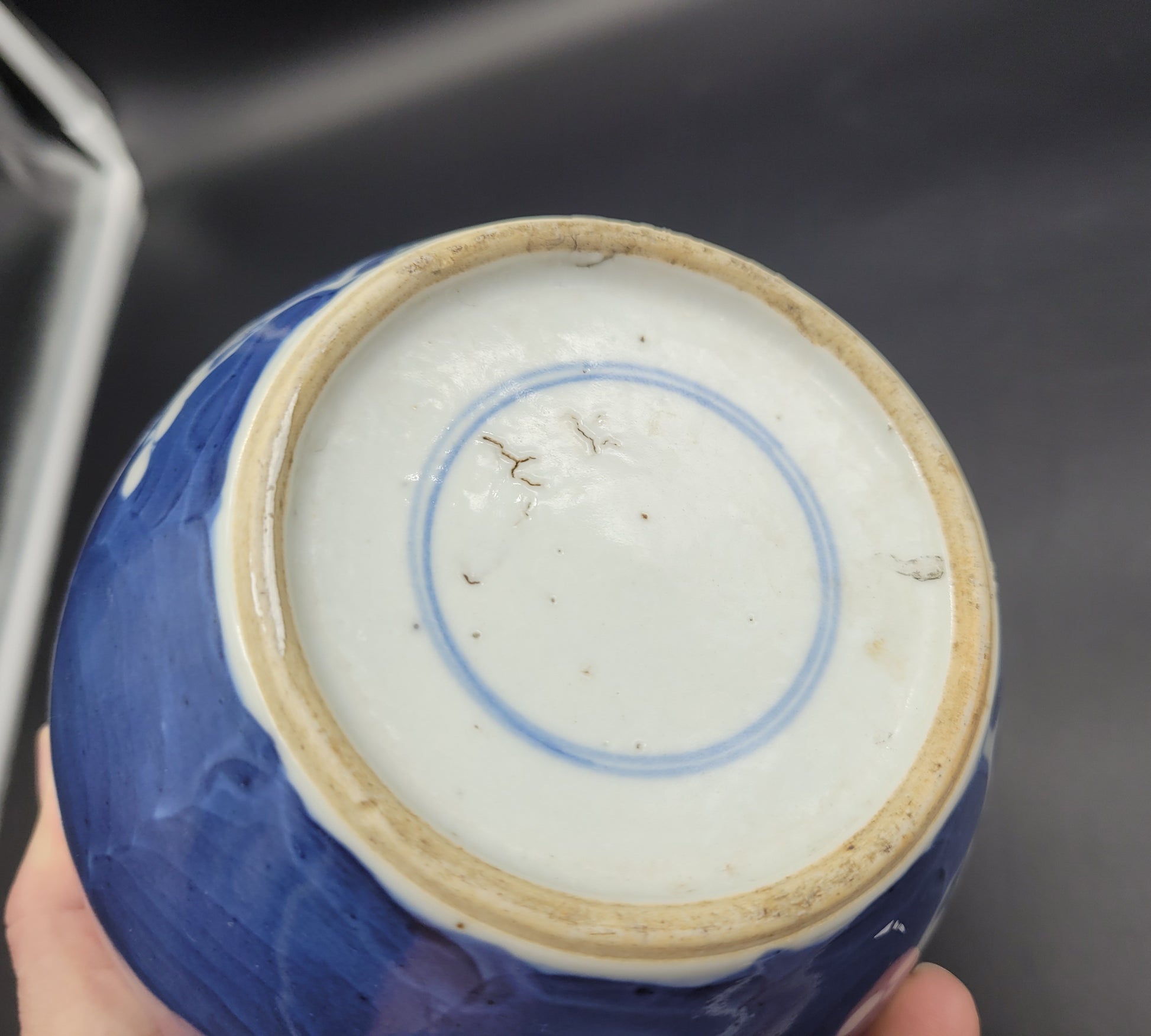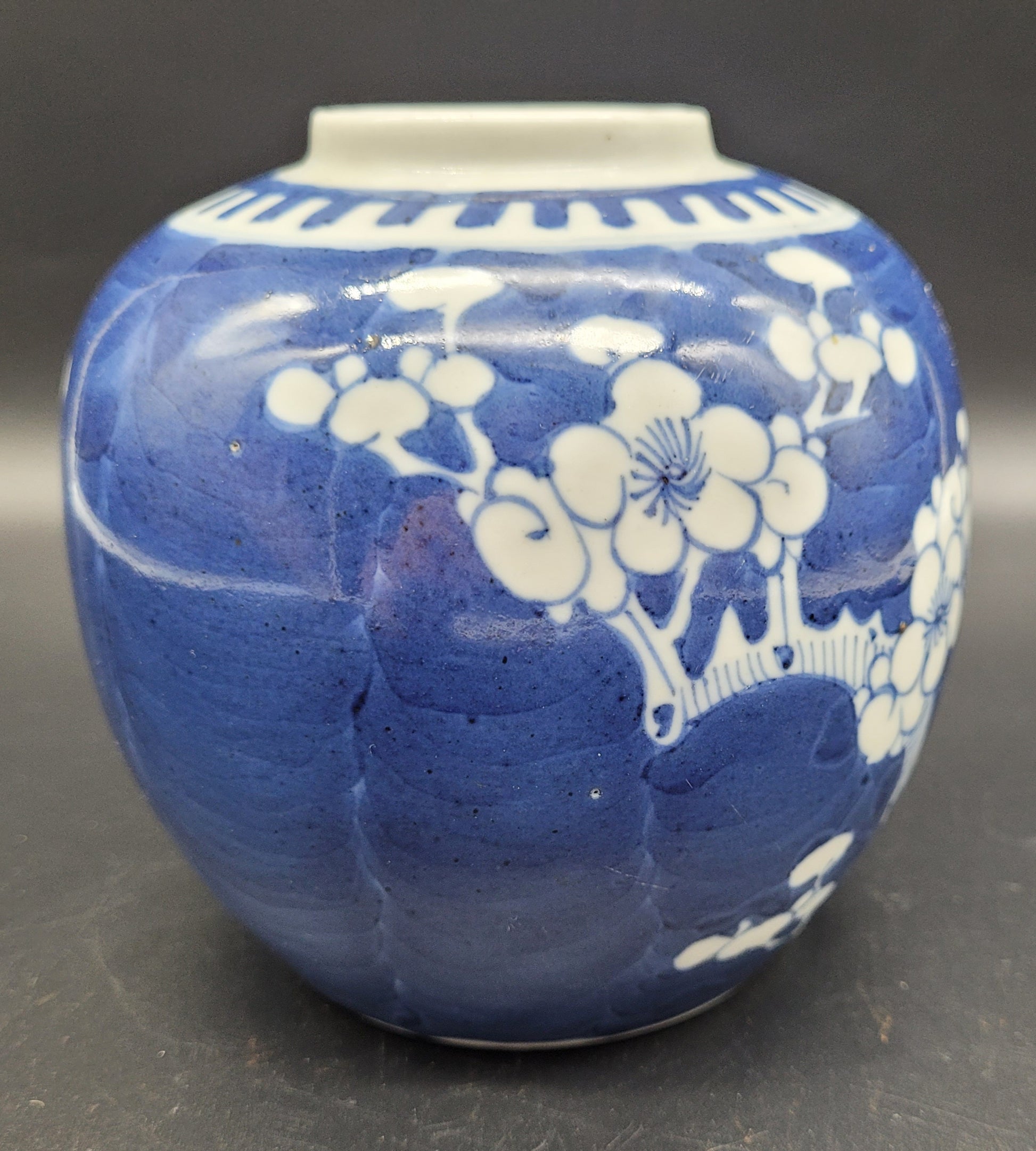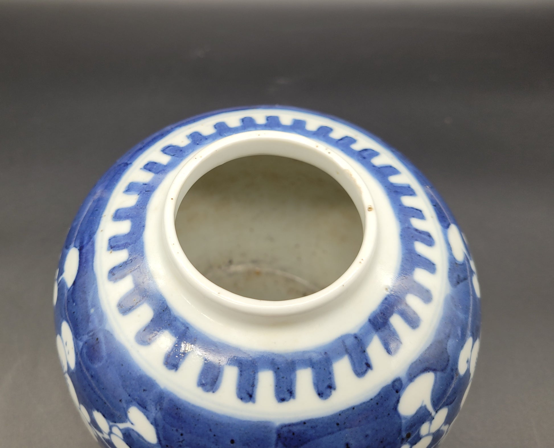 Antique Chinese 19th Century Prunus pattern Ginger Jar Blue / White With Double Ring Mark #1