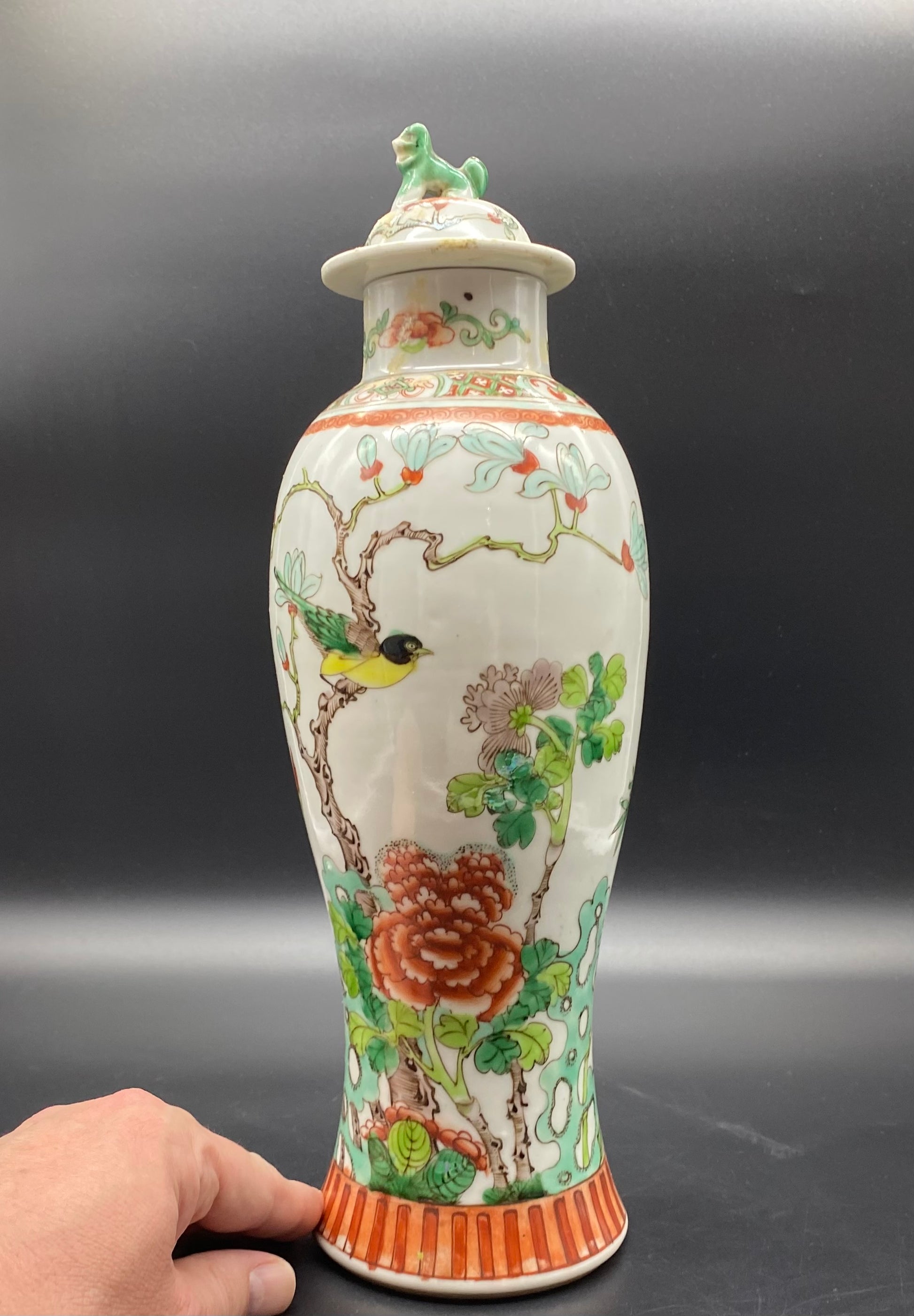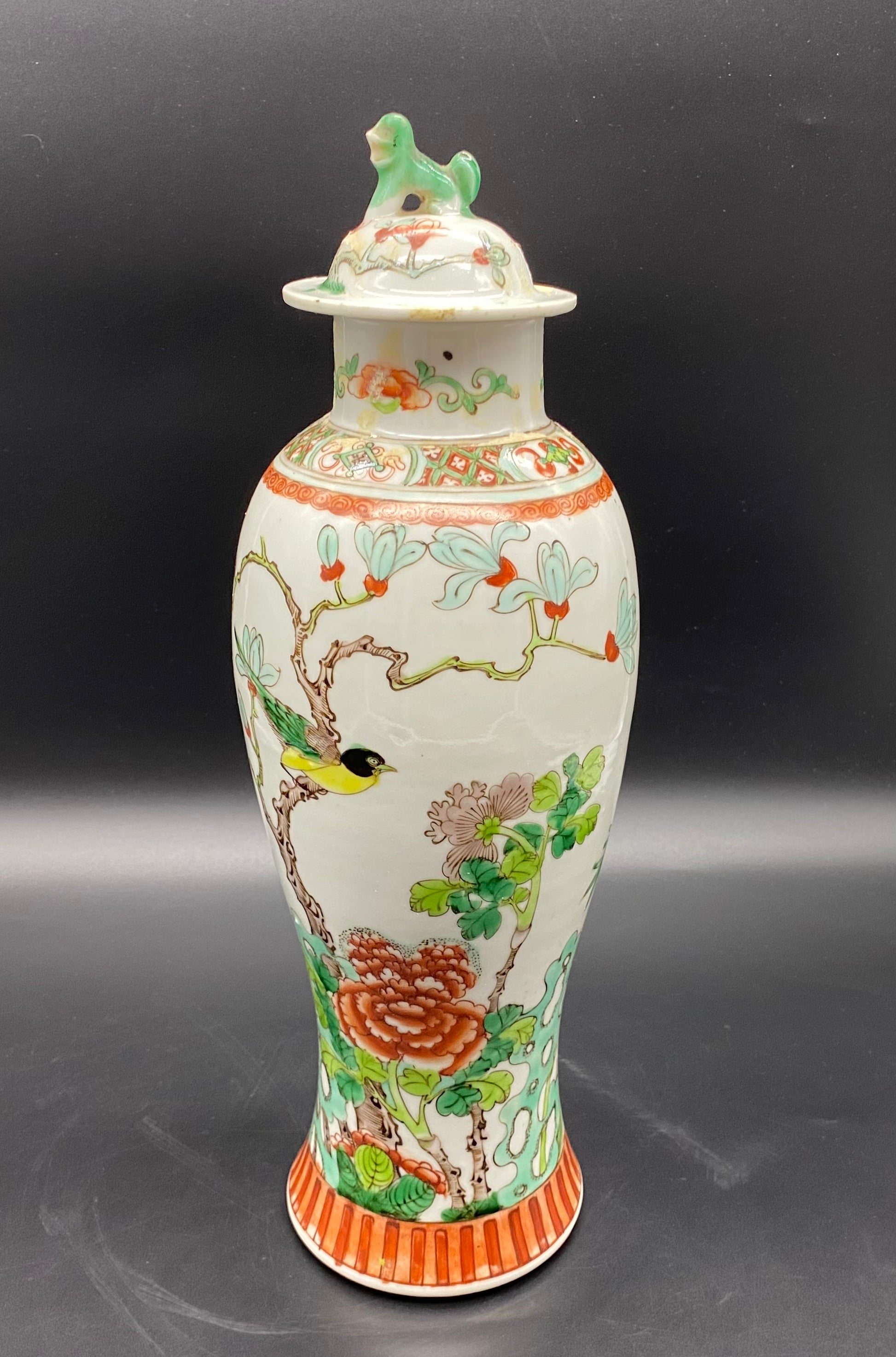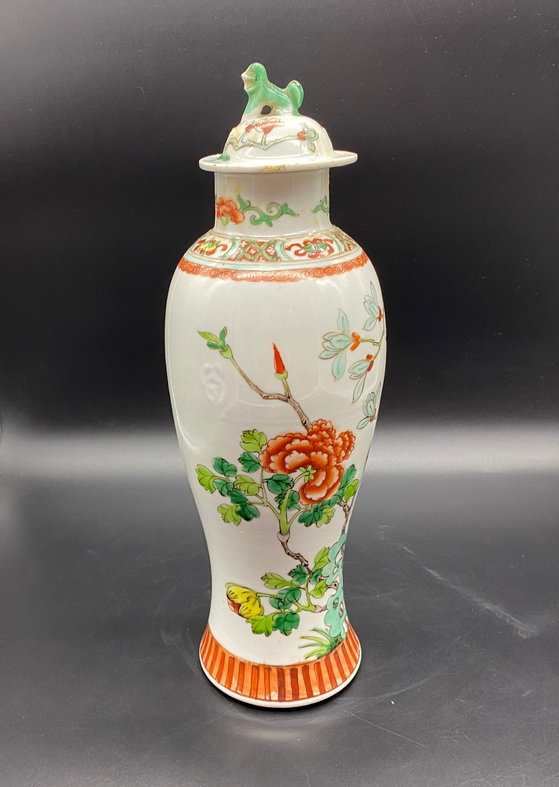 Antique Chinese Famille Verte Qing Dynasty Porcelain Vase with Cover