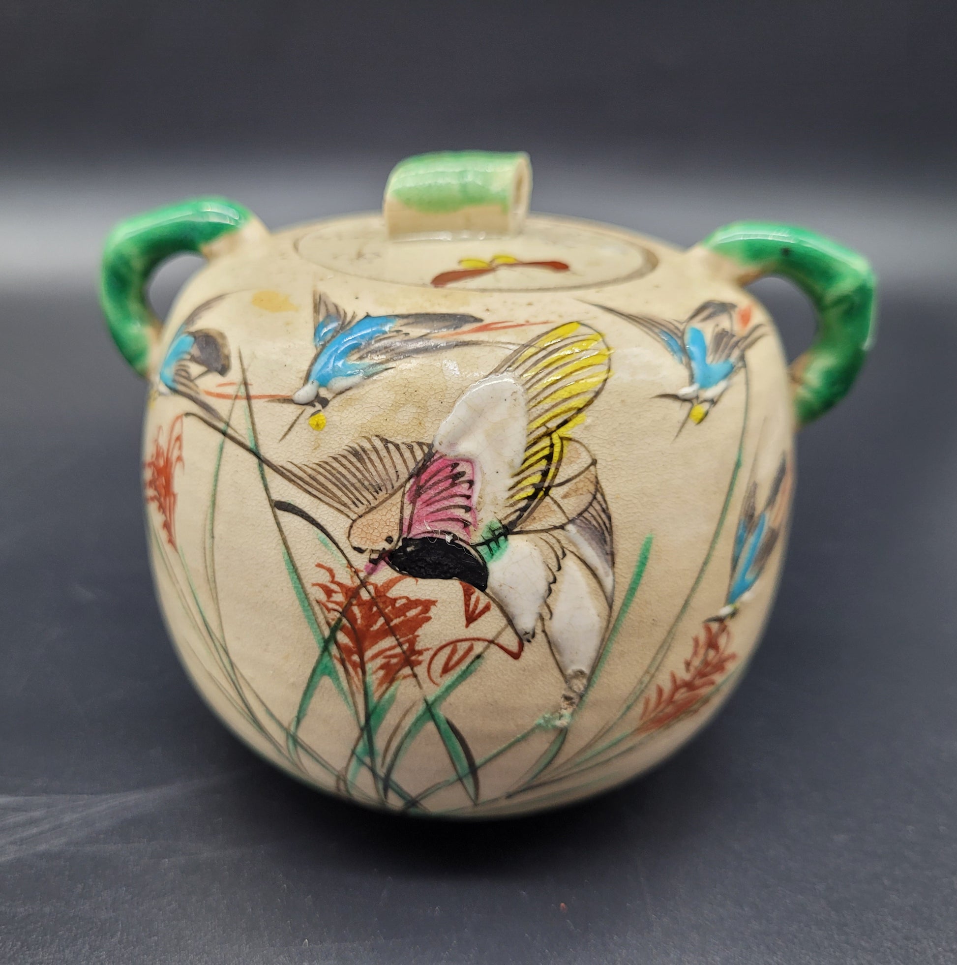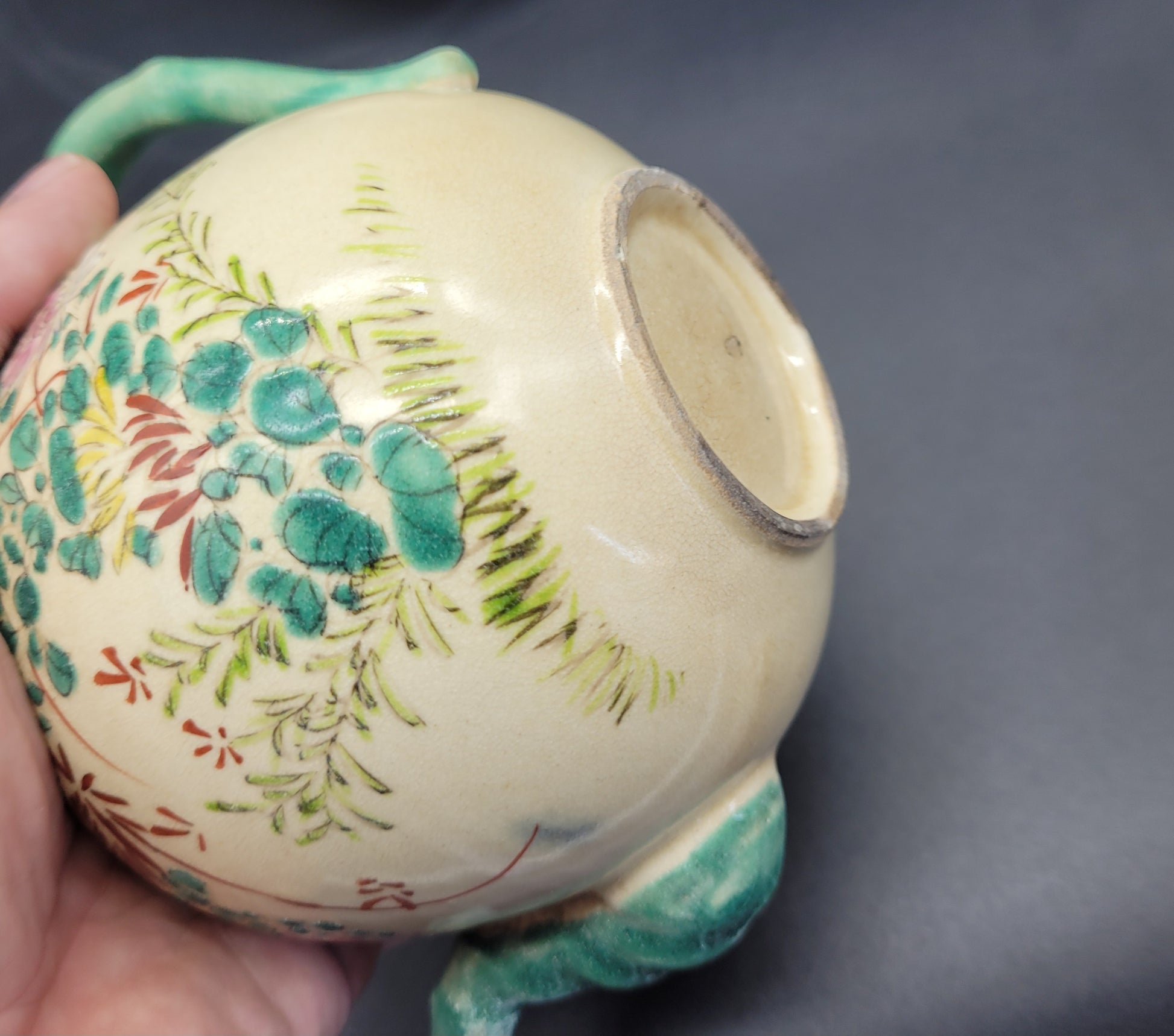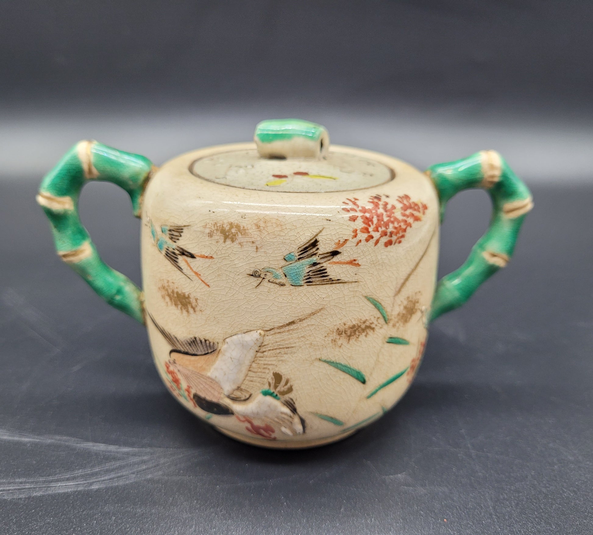 ANTIQUE JAPANESE TEA SET KINKOZAN AWATA SATSUMA .CIRCA 1860/80.MADE BY CERAMIC,HARD CLAY,DARK AND CLEAR GLAZE.HAND MADE AND PAINTED BY KINKOZAN FAMILY.COLOUR AND GLAZE.