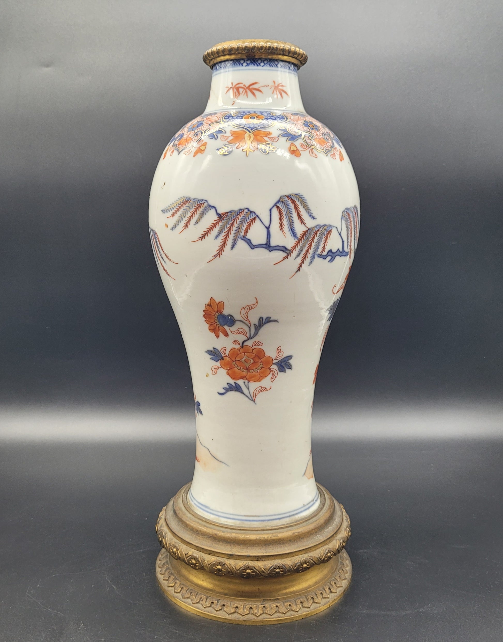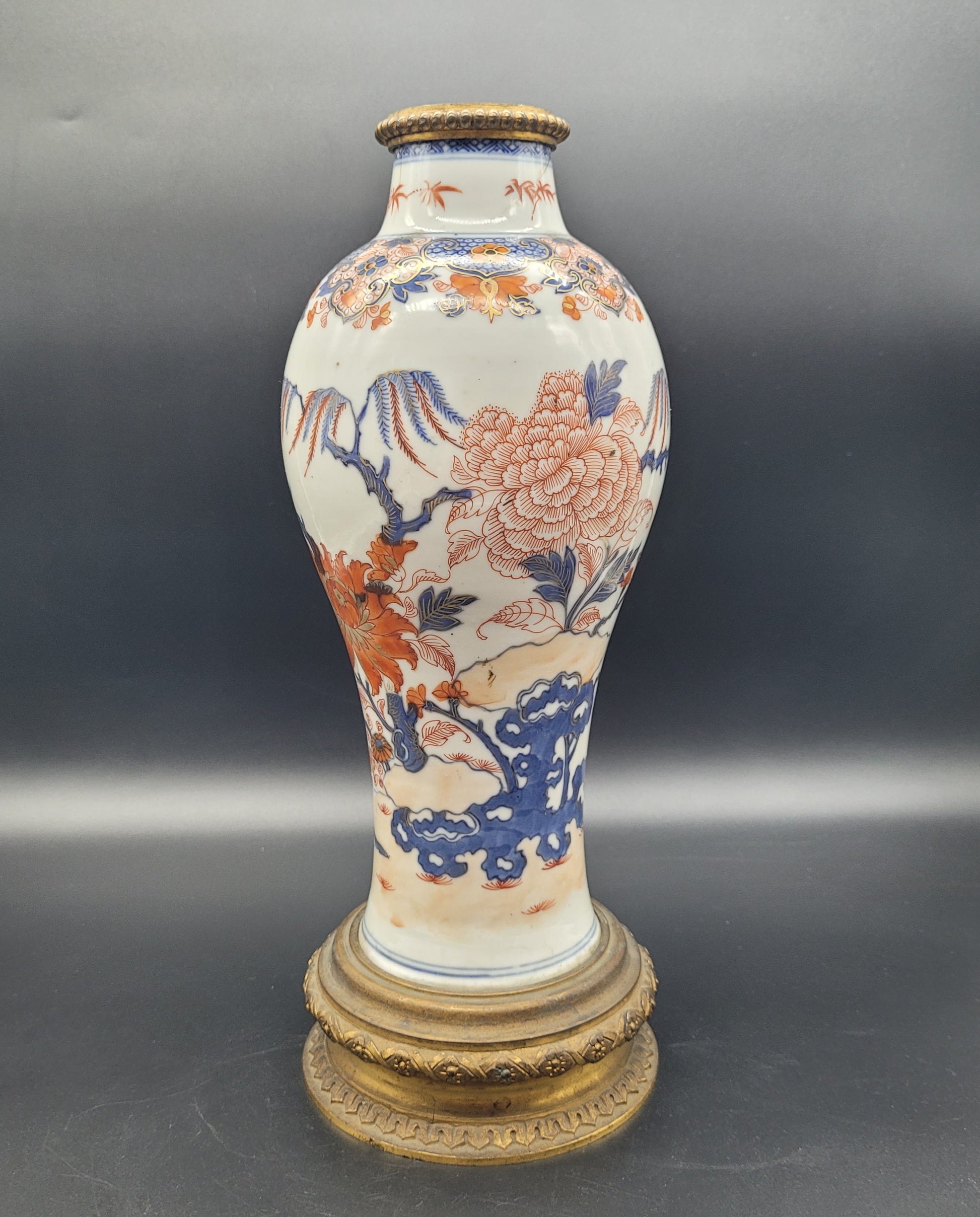 Antique Kangxi Period Chinese Imari Porcelain Vase, With 19th Century Gilt Bronze Mount