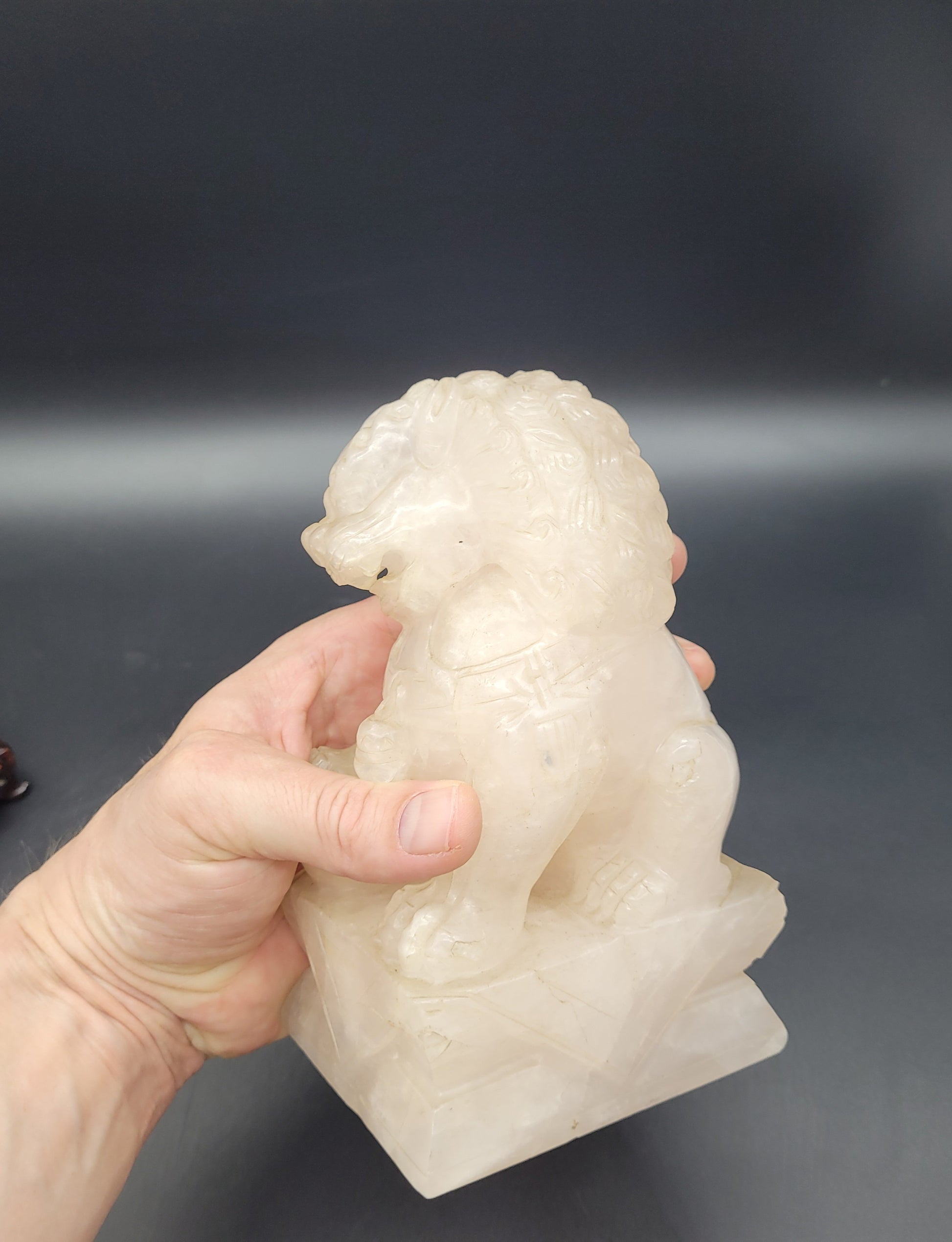 Chinese Antique Foo Dog ROSE QUARTZ Carvings Temple Dogs