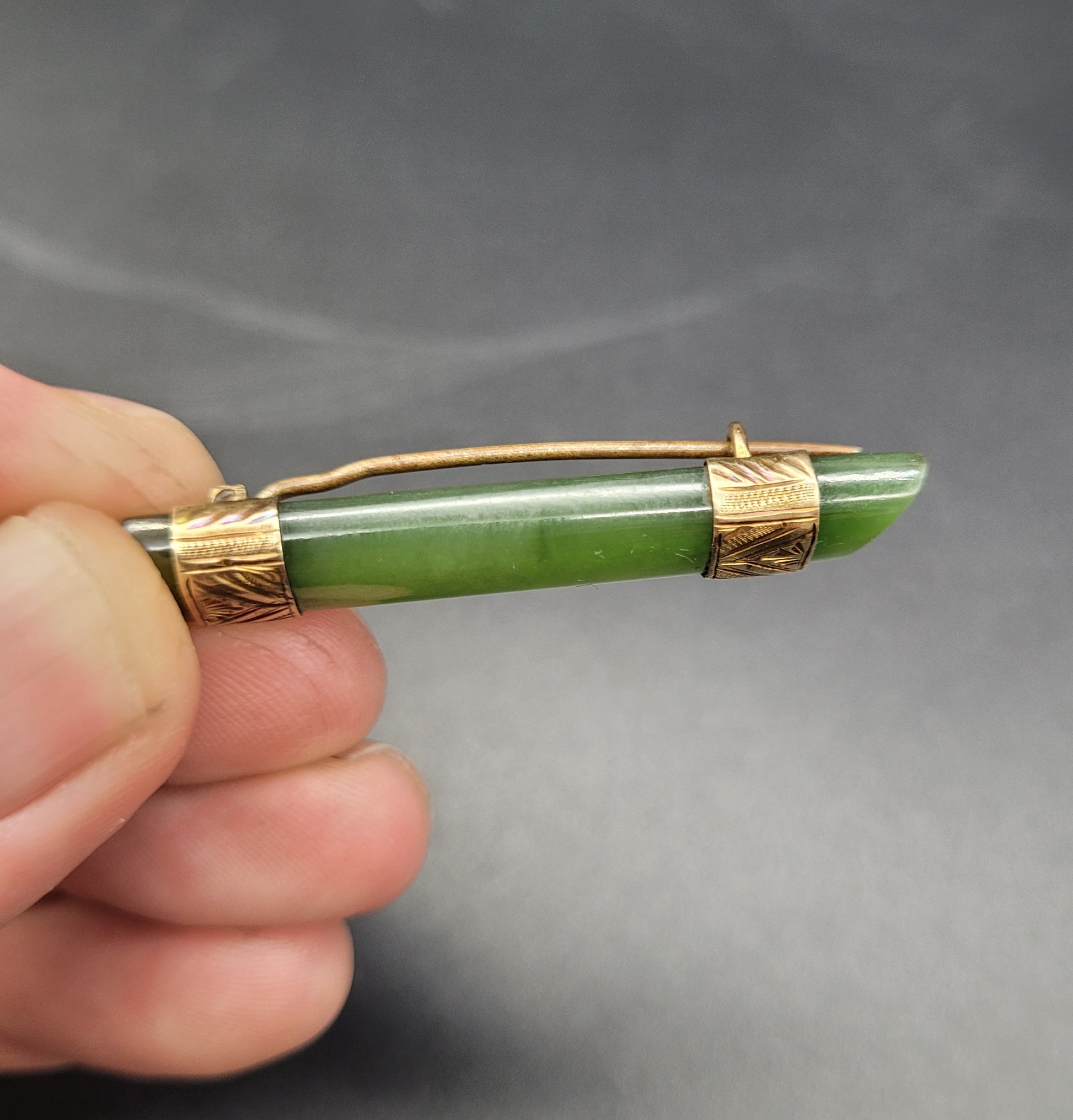 Beautiful Antique Chinese Spinach Jade and Gold Brooch / Pendent