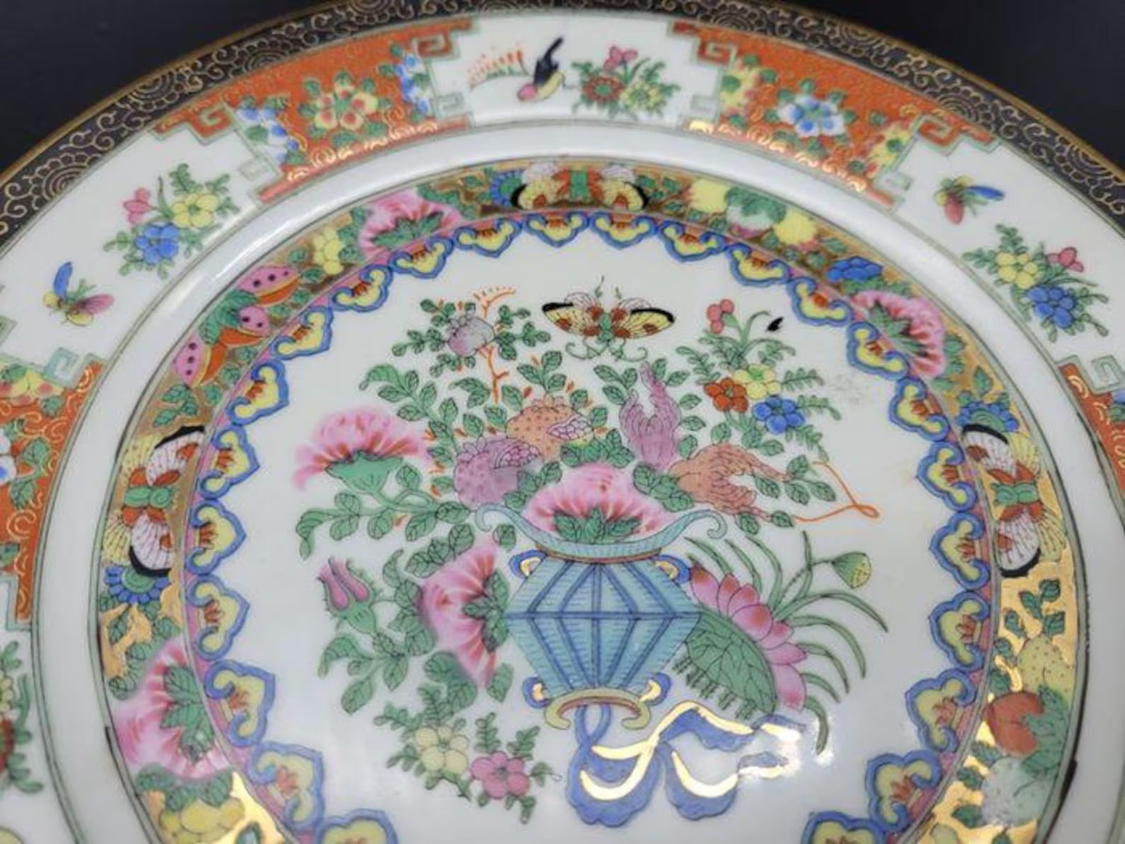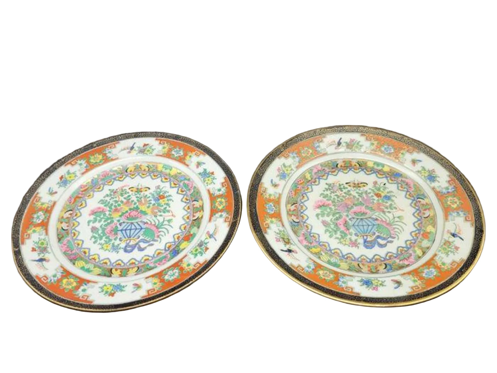 Chinese Early 20th century hand painted plates Famille Rose Pair