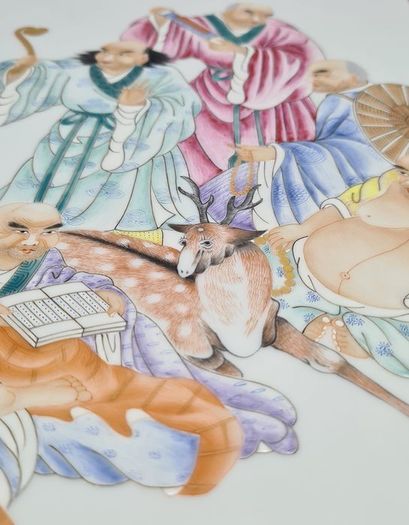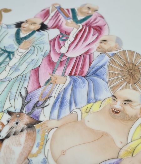 Impressive Hand Painted 'Famille Rose' plaque with enamel techniques