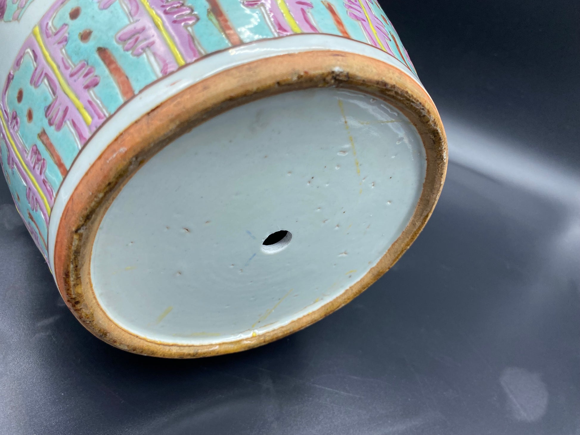 Condition : This Vase is in excellent condition with no chips or cracks. There is slight rubbing to some of the enamels and the bottom has been drilled as it was converted into a lamp at some time in its life. ( SEE PHOTOS FOR FULL DESCRIPTION )