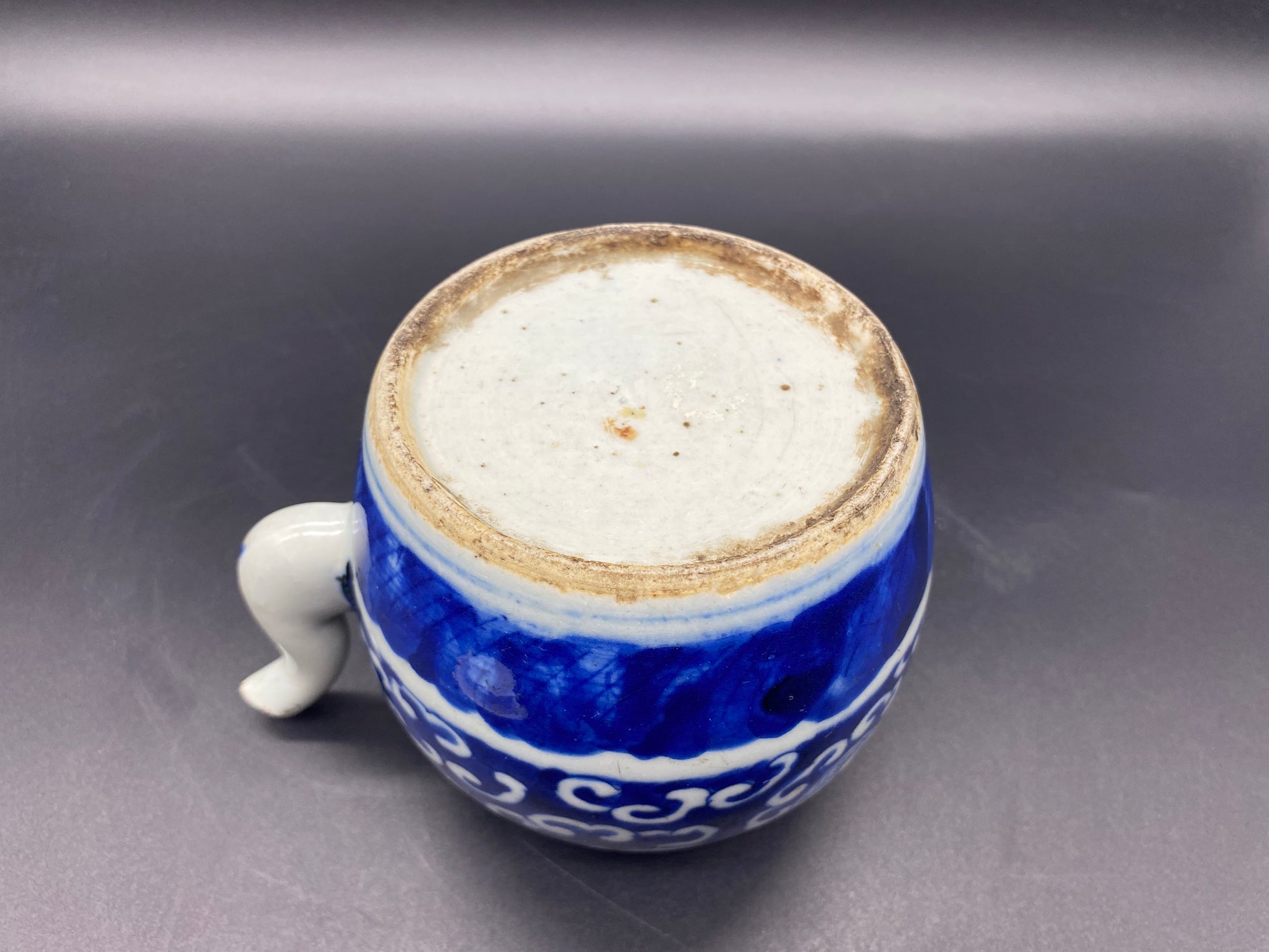 This is an 18th century antique Chinese tea pot from the Qing Dynasty. Recently acquired by from an Asian Art Collector who lived and traveled all over China & Japan in the 1960's picking up nice pieces of antique Chinese porcelain along the way. It is hand made piece and hand painted in the classic cobalt underglaze. Decorated with a dragon chasing the pearl of wisdom amongst clouds. This Chinese teapot is complete with the original lid. The jar measures approximately 4" tall and 4" in diameter (10 x 10 cm). A simple and elegant piece of asian history that's both highly collectible and quite decorative.