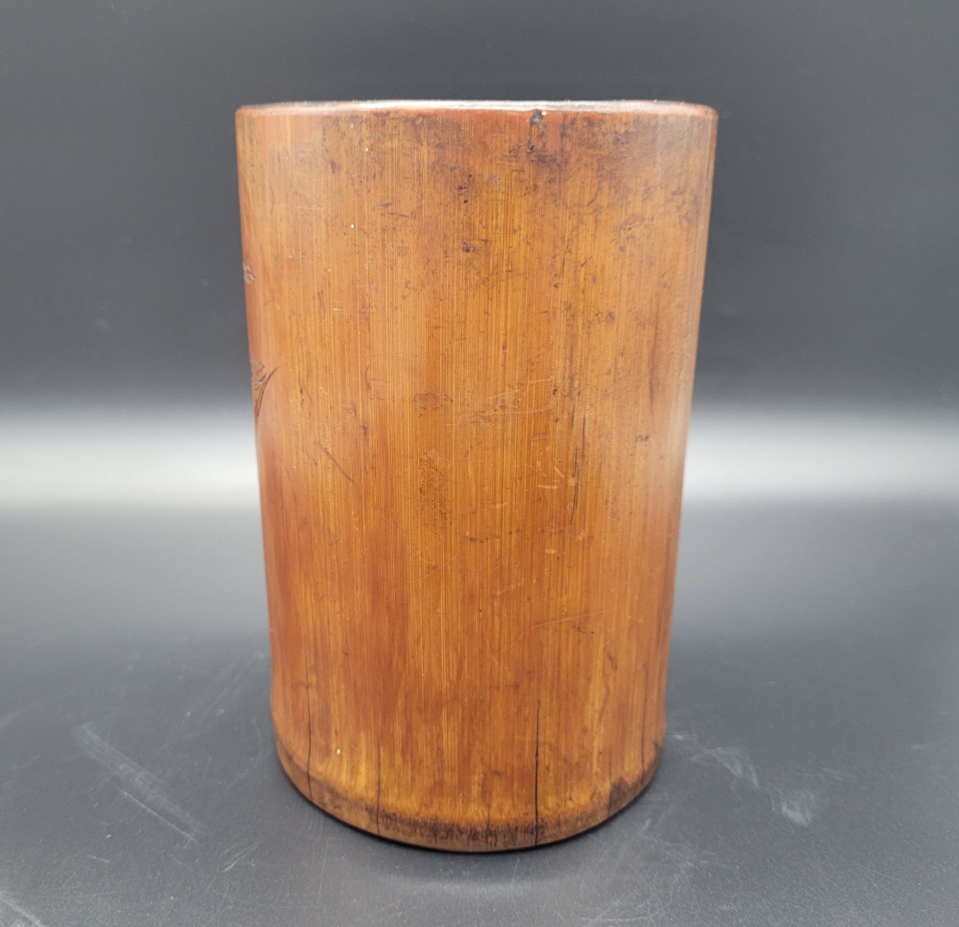 Chinese Qing 19th Century Carved Bamboo Brush Pot