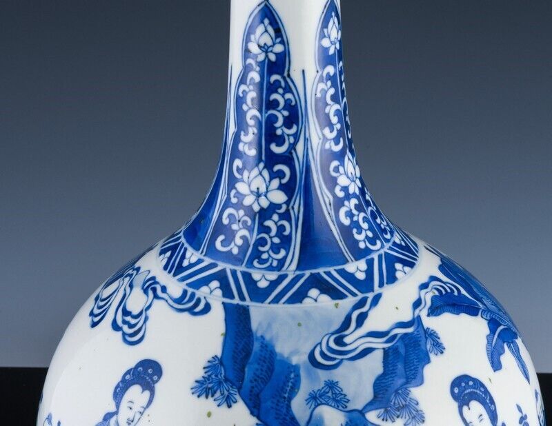 LARGE 17thc CHINESE BLUE & WHITE FIGURAL LANDSCAPE BOTTLE VASE KANGXI PERIOD