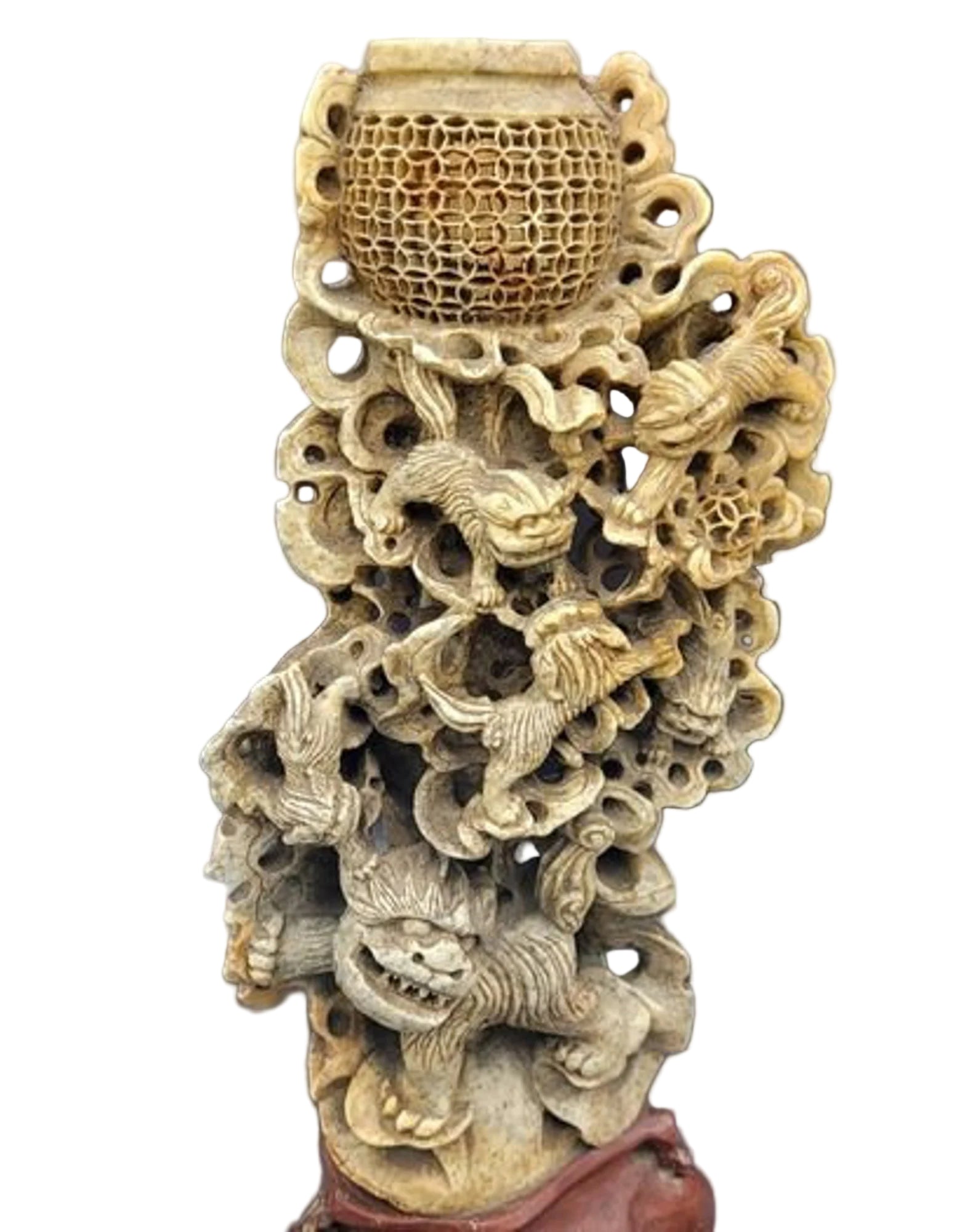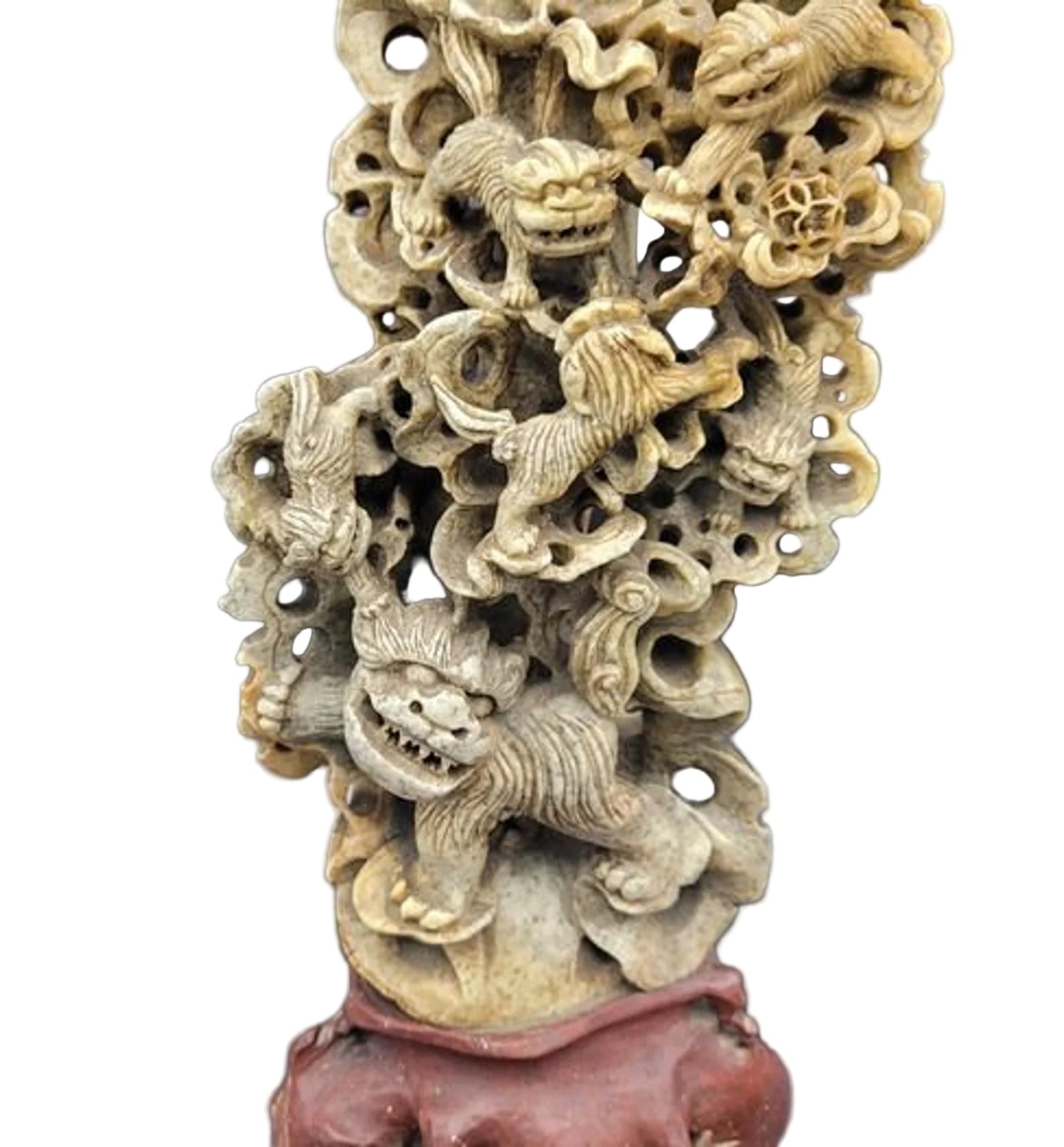 Rare Large Antique 19th/20th Century Chinese Qing Soapstone Foo Dog Carving